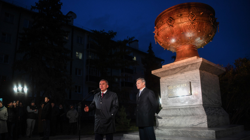 Торжественная церемония открытия скульптуры «Тайказан» состоялась сегодня в Казани, в сквере на пересечении улиц Назарбаева и Качалова.