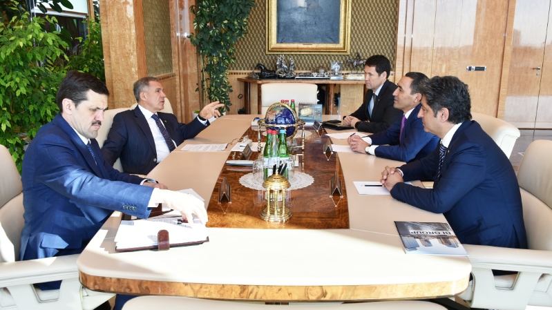 Президент Татарстана Рустам Минниханов провел деловую встречу с председателем совета директоров одного из крупнейших инвестиционно-строительных холдингов Казахстана – компании BI Group Айдыном Рахимбаевым.