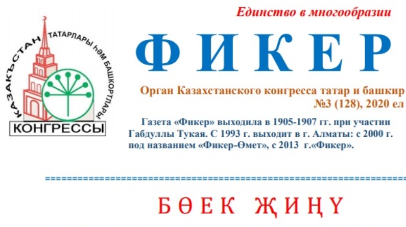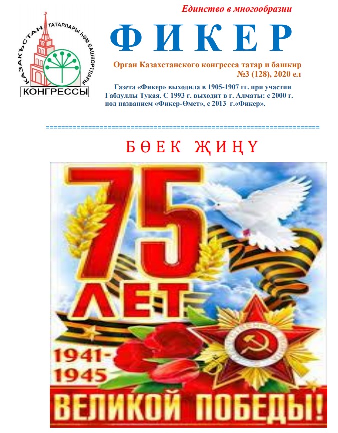 В честь 75-летия Великой Победы, к преддверию праздника, Казахстанский конгресс татар и башкир подготовил специальный выпуск газеты «Фикер», посвящённый нашим соотечественникам – участникам Великой Отечественной войны.
