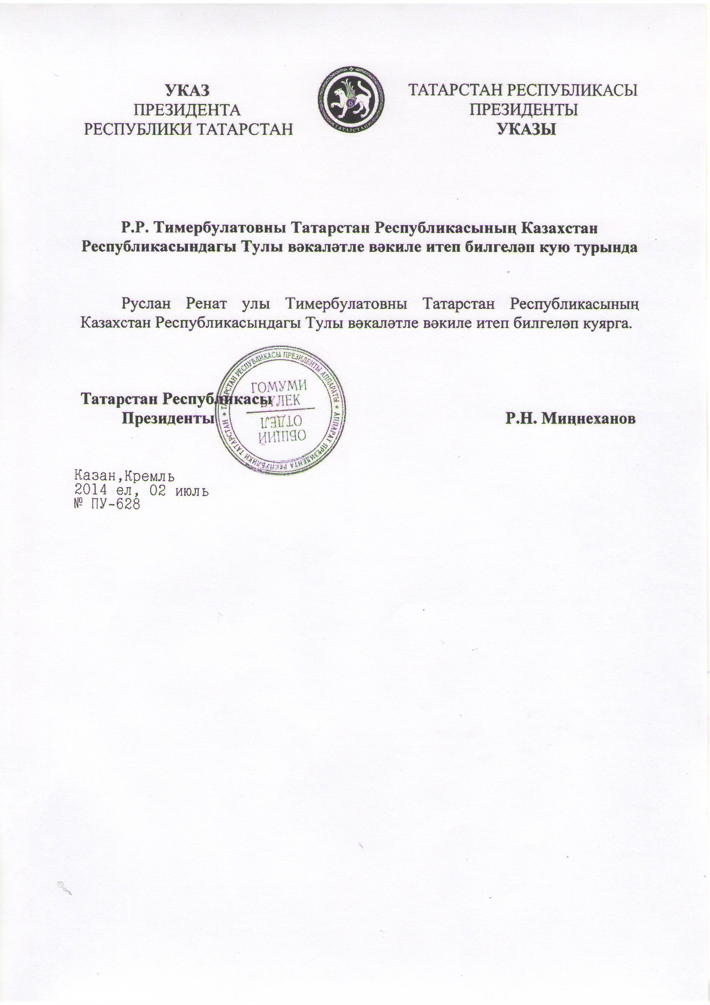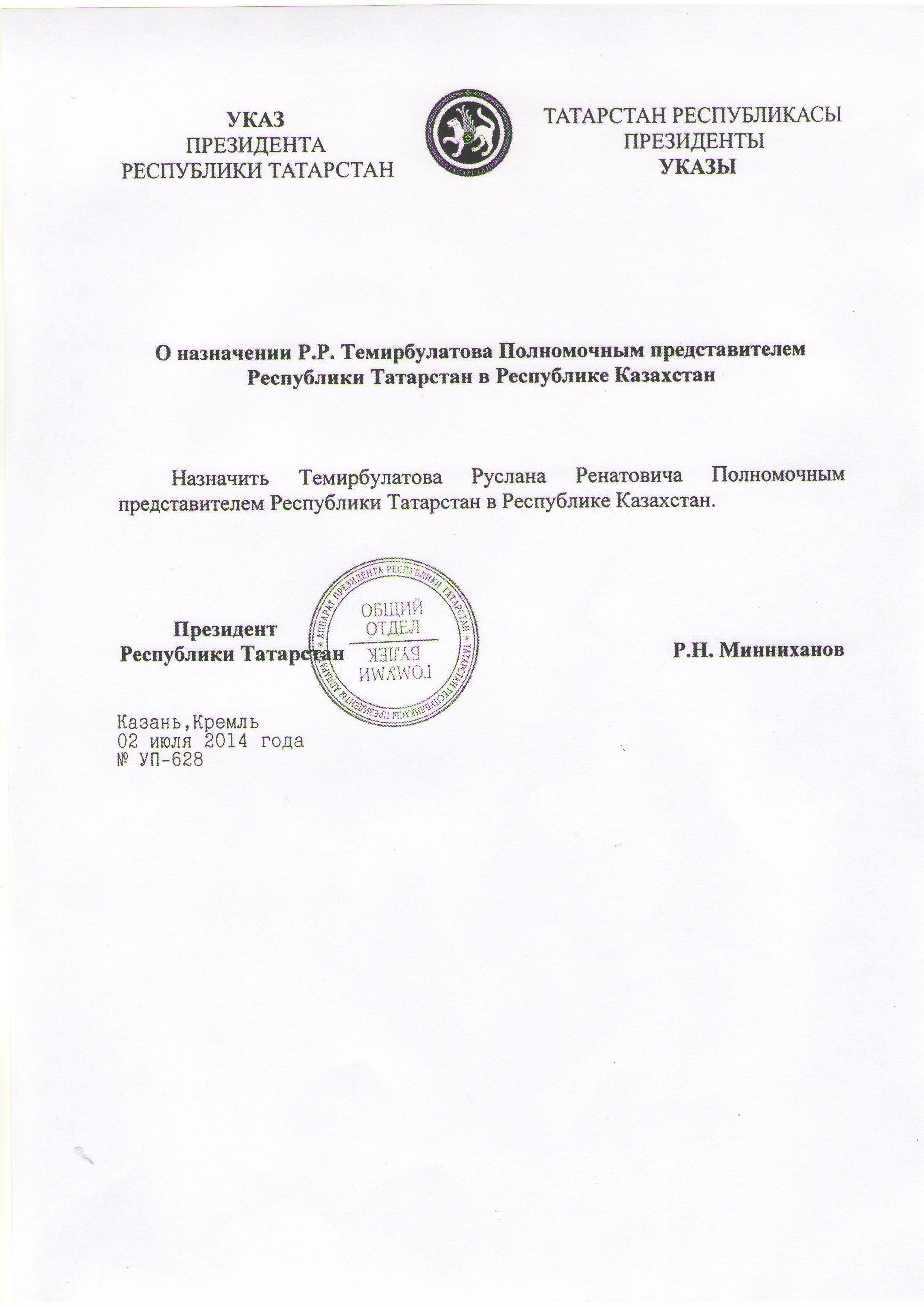 Указ Президента РТ о назначении Р.Р. Темирбулатова Полномочным представителем РТ в РК